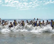 Tradicional Travessia dos Veteranos é realizada na praia Central de Guaratuba 06/01/2018 - 13:20