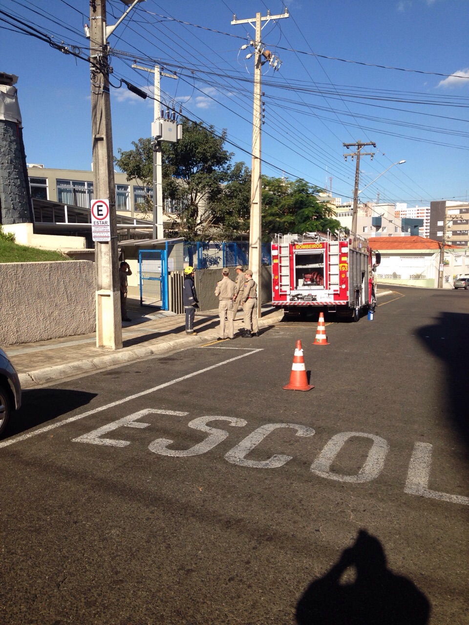 Vários alunos, professores e funcionários participaram do exercício, que faz parte dos treinamentos exigidos pela Norma de Procedimento Técnico 017, regulamentadora das brigadas de incêndio, e para a efetivação do plano de abandono.