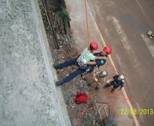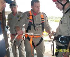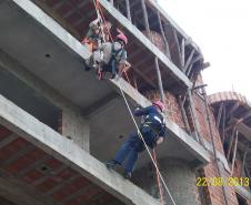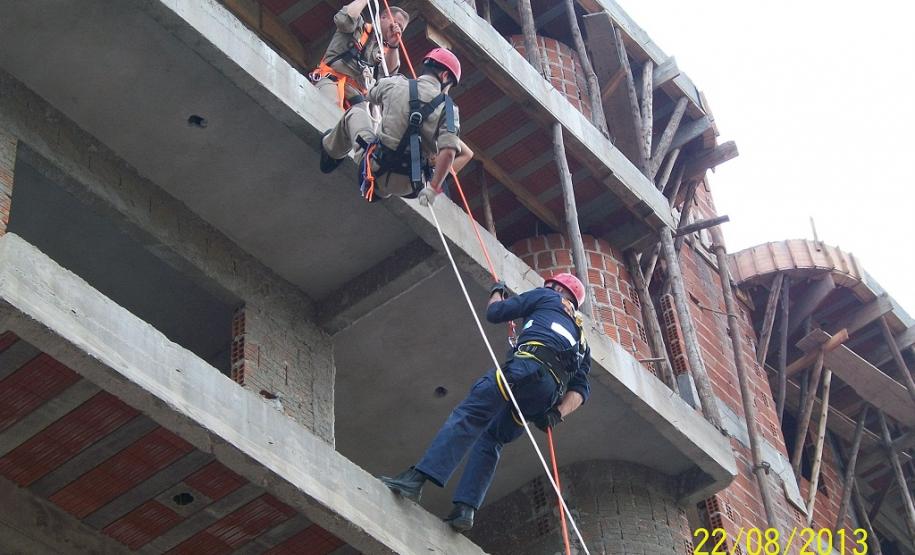 O 3ª Subgrupamento de Bombeiros de Capanema realizou treinamento para empregar os equipamentos e as técnicas de salvamento vertical em instrução prática de retirada de vitimas isoladas e retirada de vitimas de acidente do trabalho na construção civil, seguras e salvas pelo uso correto do Equipamento de Proteção Individual.