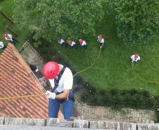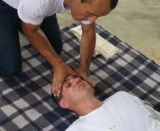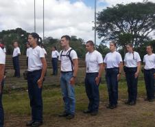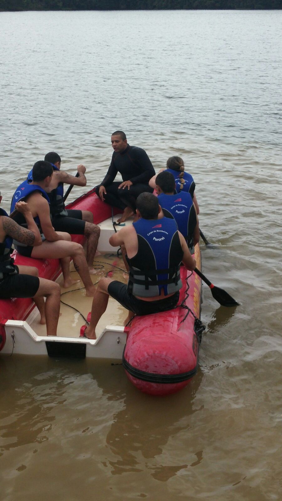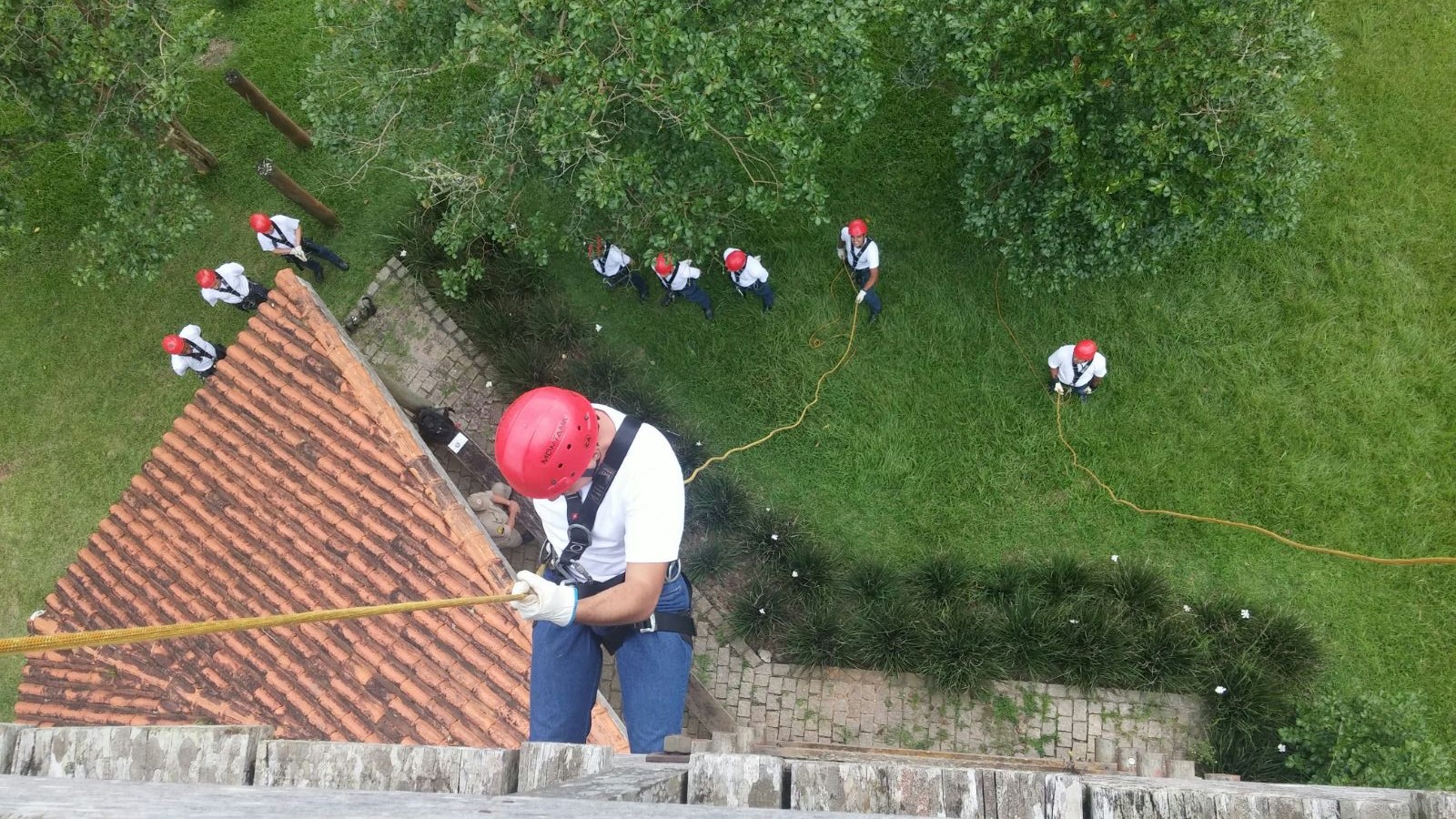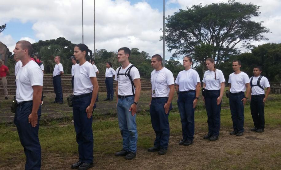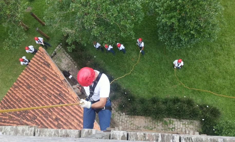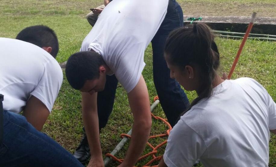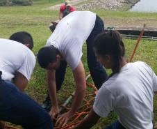 Foram ministradas instruções de orientação, travessia em ambiente aquático, salvamento vertical, ordem unida, primeiros socorros e armação de linha.