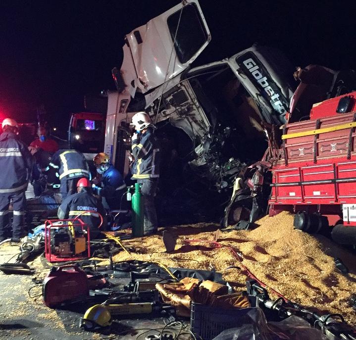 Maringá, 01/09/2020 - O Corpo de Bombeiros em Maringá foi acionado às 18h30min da segunda-feira (31) para atendimento de uma colisão entre dois veículos pesados na PR-454 em Içara, distrito de Astorga, com a informação inicial de que havia três vítimas presas às ferragens. Foram despachados ao local o caminhão da brigada comunitária de Astorga; uma ambulância, dois caminhões de combate a incêndio e resgate e uma caminhonete de salvamento do Corpo de Bombeiros em Maringá; o veículo de intervenção rápida - VIR SIATE (médico, enfermeira e condutor bombeiro militar); uma caminhonete de salvamento; e do SAMU foram enviadas uma unidade de suporte avançado de vida (ambulância com médico, enfermeiro e condutor), uma ambulância e um veículo de intervenção rápida - VIR SAMU.