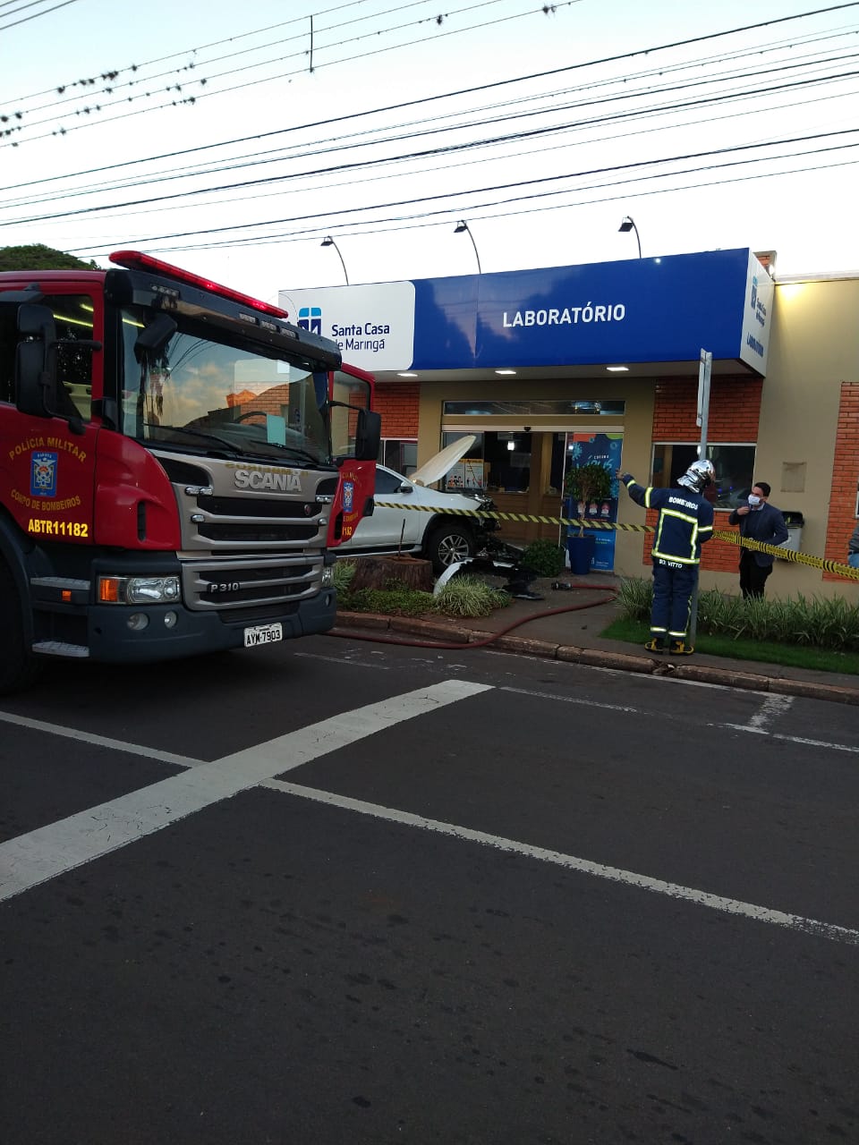 Maringá, 09/07/2020 – O Corpo de Bombeiros Militar recebeu chamado de socorro em torno das 7h desta quinta-feira (09) para atender a uma colisão envolvendo um SUV e uma motocicleta na Rua Santos Dumont em Maringá, próximo ao Hospital Santa Casa.