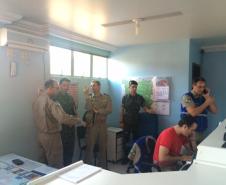 O Comandante do 3° SGBI, Major Antonio Schinda, explanou para a comitiva do esquadrão sobre a estrutura organizacional do subgrupamento, sobre os eventos meteorológicos que acometem nossa região todos os anos, além do relatório estatístico das ocorrências mais frequentes atendidas pelas prontidões bombeiro militar e pelos Agentes de Defesa Civil.