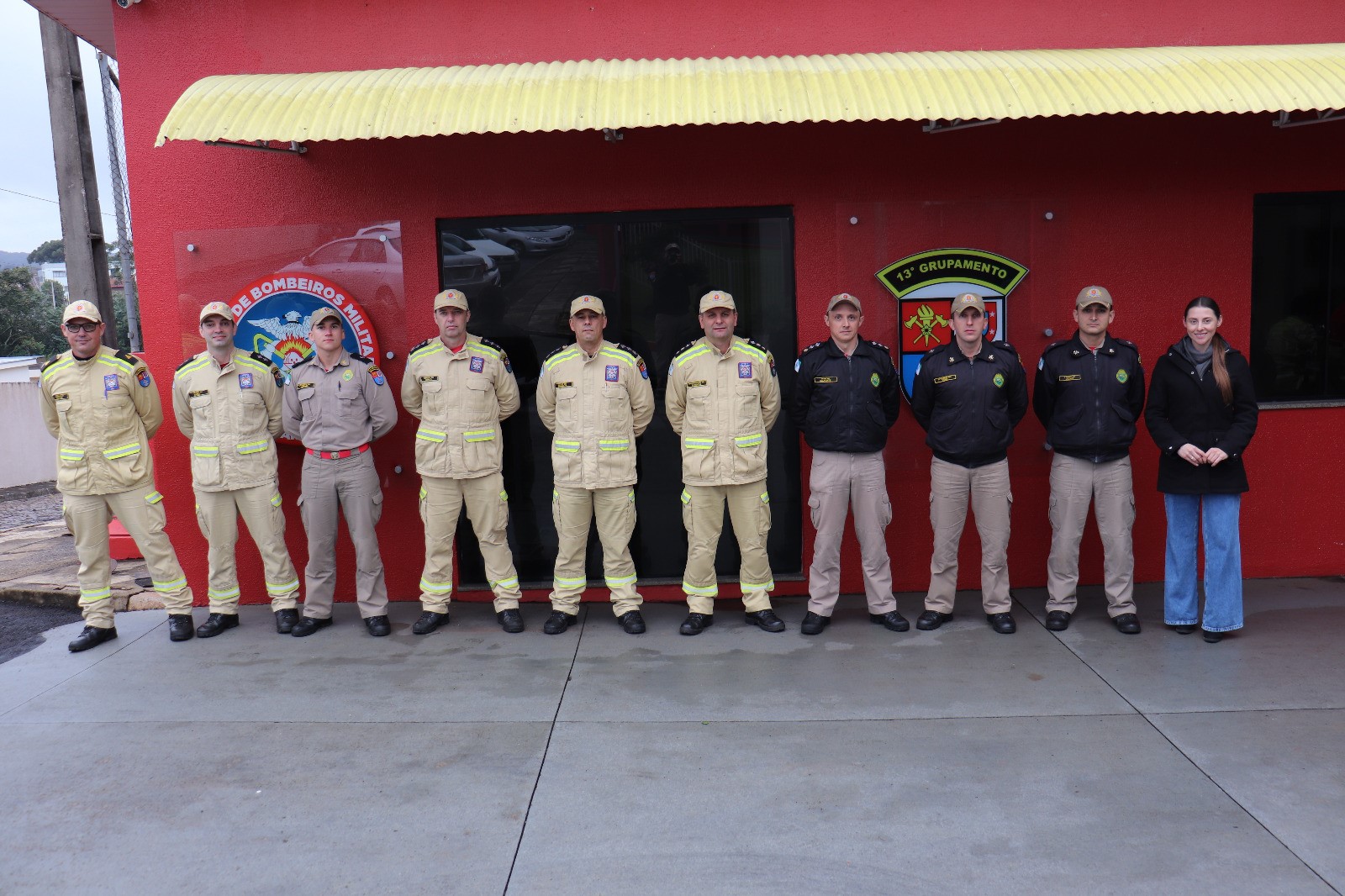 Na oportunidade o Comandante do 13° Grupamento de Bombeiros Militar, Major Alecsander Aparecido Dornelas, juntamente com os demais Oficiais, receberam o Tenente-Coronel Schinda com sua comitiva formada pelo Capitão Luciano merlo e pelo 1º Tenente Rafael Antonio Carabagiale Fuck.