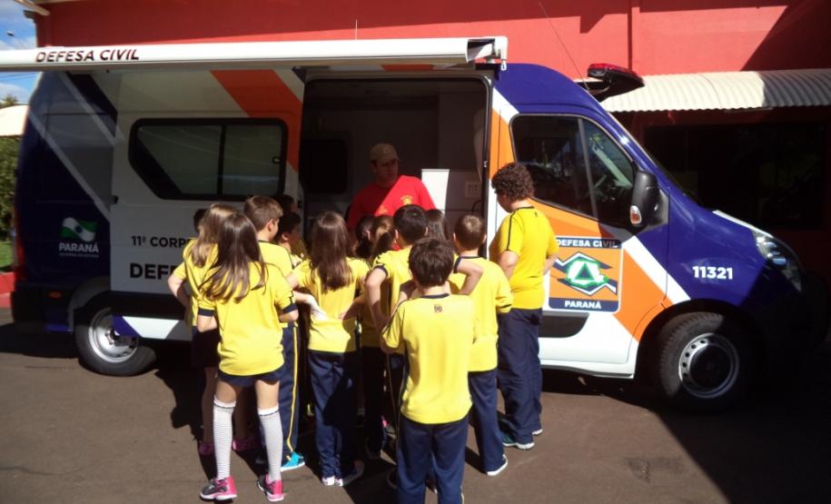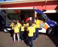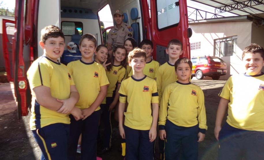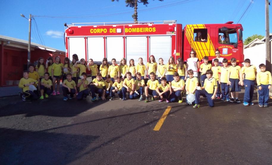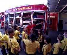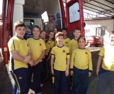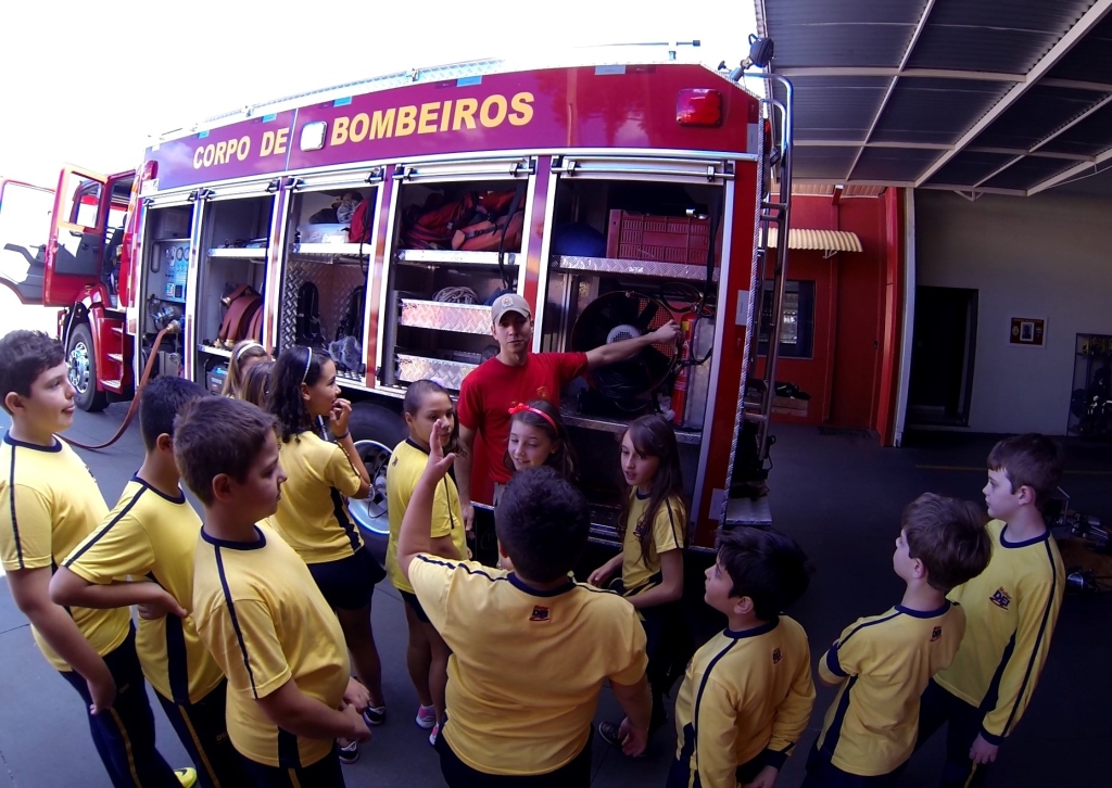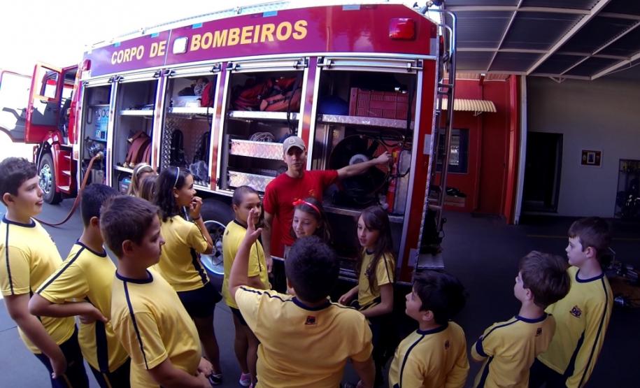 Foi realizada a apresentação das instalações, viaturas, materiais e equipamentos utilizados pelos bombeiros. As crianças tiveram a oportunidade de receber orientações sobre a prevenção de acidentes domésticos e sobre a utilização do telefone 193.
