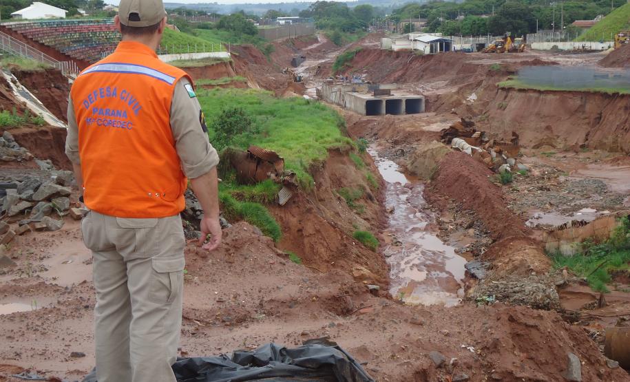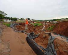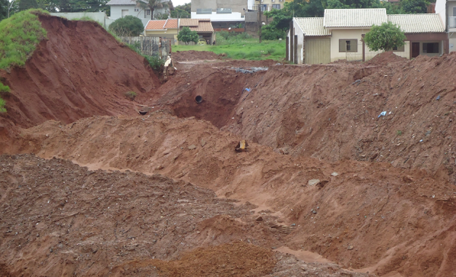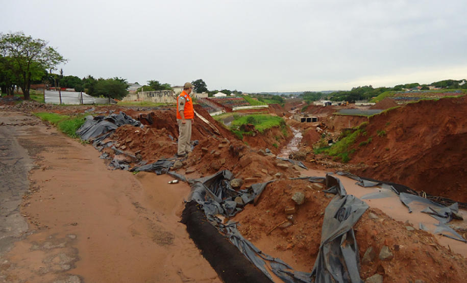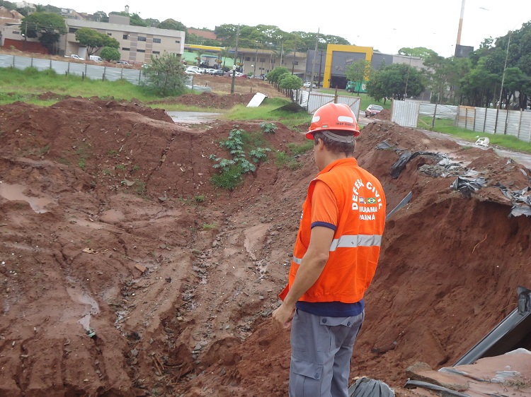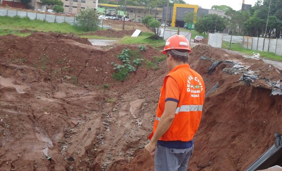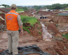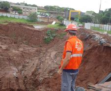Devido a grande quantidade de chuvas nestes dias e a enxurrada na tarde de ontem 29/09/2015, constatou alguns pequenos deslizamentos sem prejuízos as obras que estão sendo feitas naquele local, não havendo necessidade de maiores intervenções, sob controle.