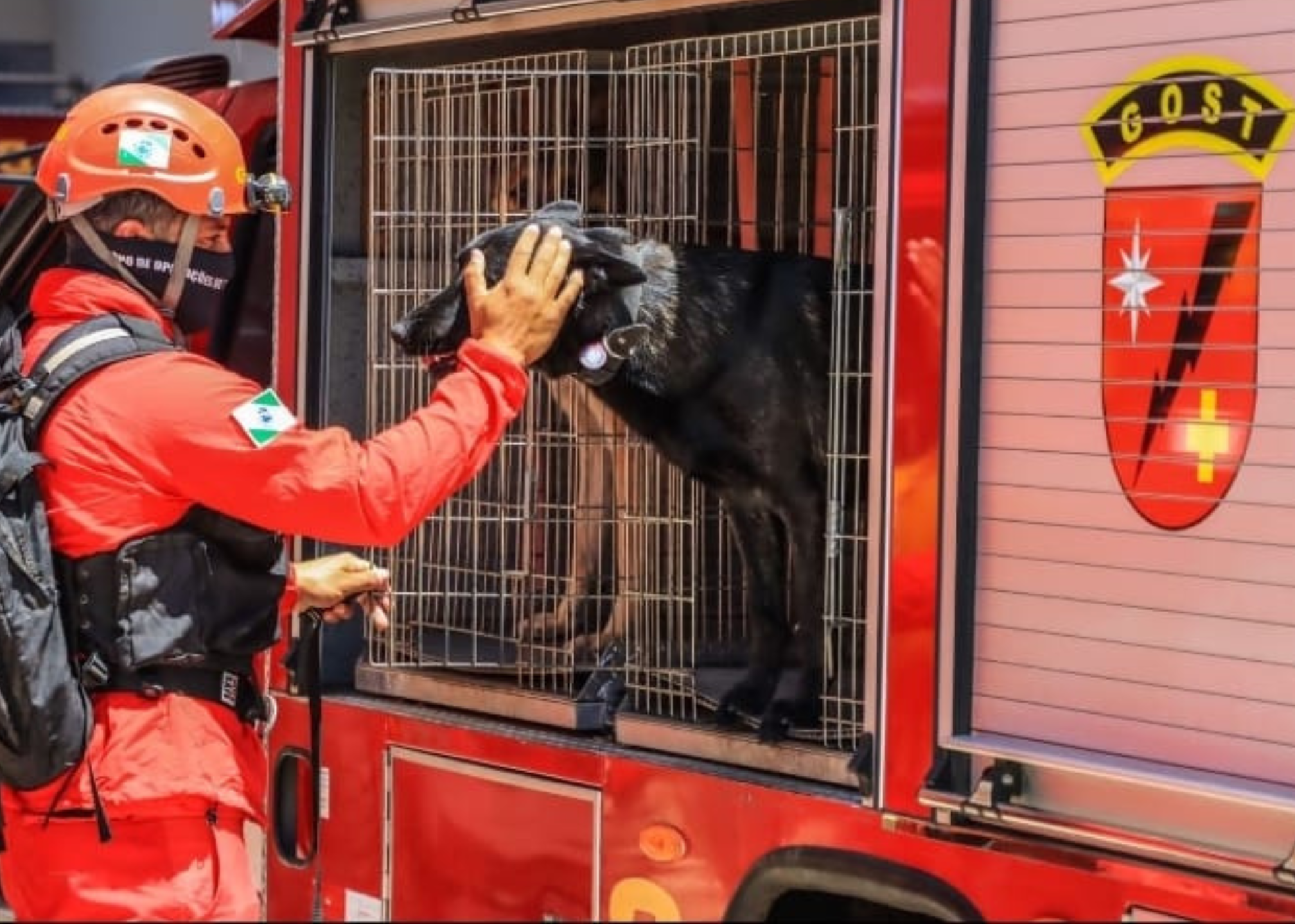 Os binômios, como são chamadas as duplas compostas pelo cão e pelo bombeiro militar que o conduz, vão atuar na região serrana gaúcha. “Estamos enviando dois binômios para Bento Gonçalves, a pedido do Corpo de Bombeiros do Rio Grande do Sul, para ajudar na busca por pessoas desaparecidas em áreas deslizadas”, relatou o Major Ícaro Gabriel Greinert, comandante do Grupo de Operações de Socorro Tático (GOST).
