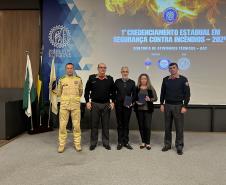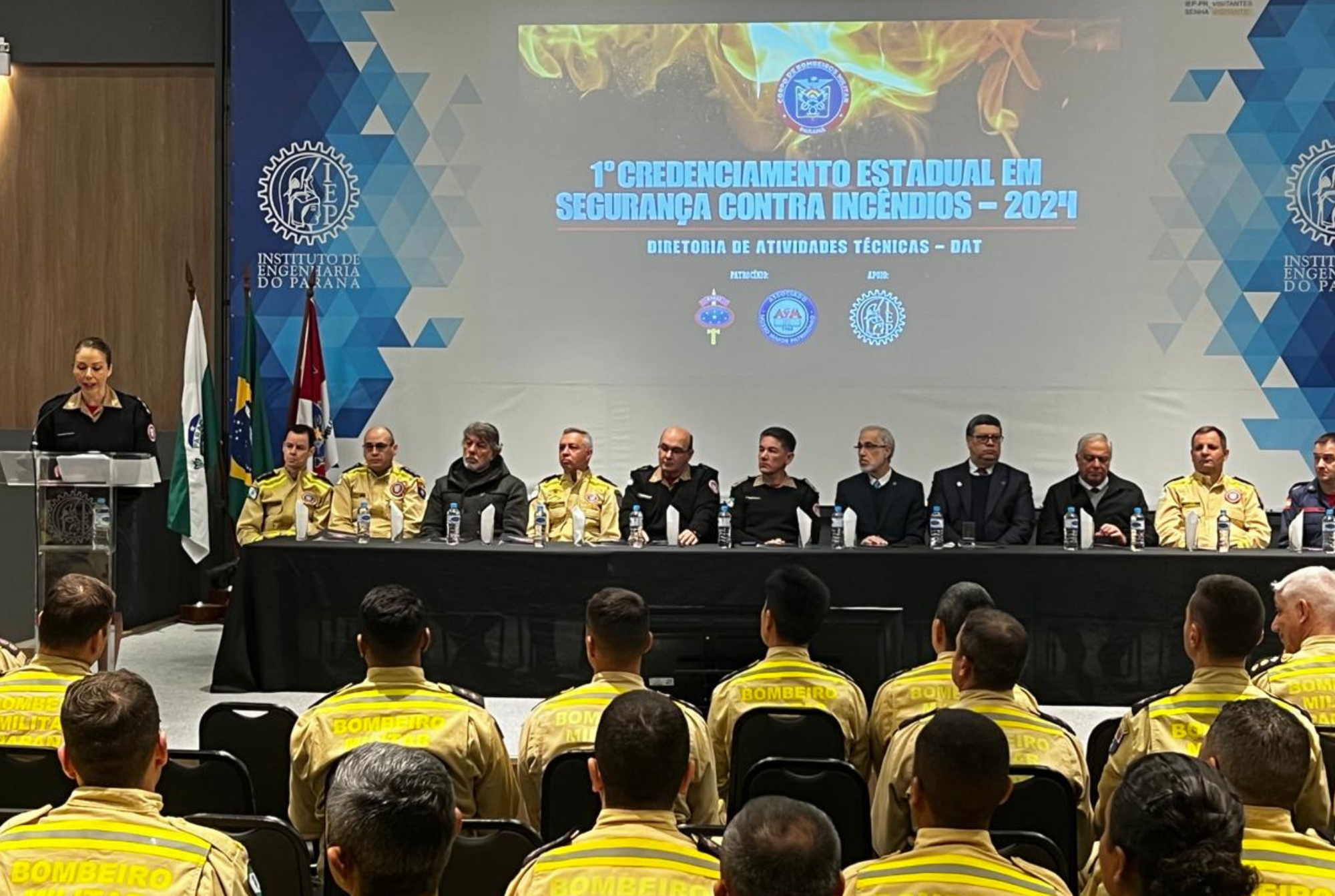 Após três dias de atividades, foi encerrado nesta quinta-feira (6) o 1º Credenciamento Estadual em Segurança contra Incêndios - 2024, promovido pelo Corpo de Bombeiros Militar do Paraná (CBMPR). O evento, com diversas palestras e apresentações, teve como meta atualizar o efetivo sobre técnicas, legislação e tecnologias adotadas nessa área dentro da Corporação. Realizado no Instituto de Engenharia do Paraná (IEP), o encontro contou com cerca de 150 bombeiros militares de todo o estado.