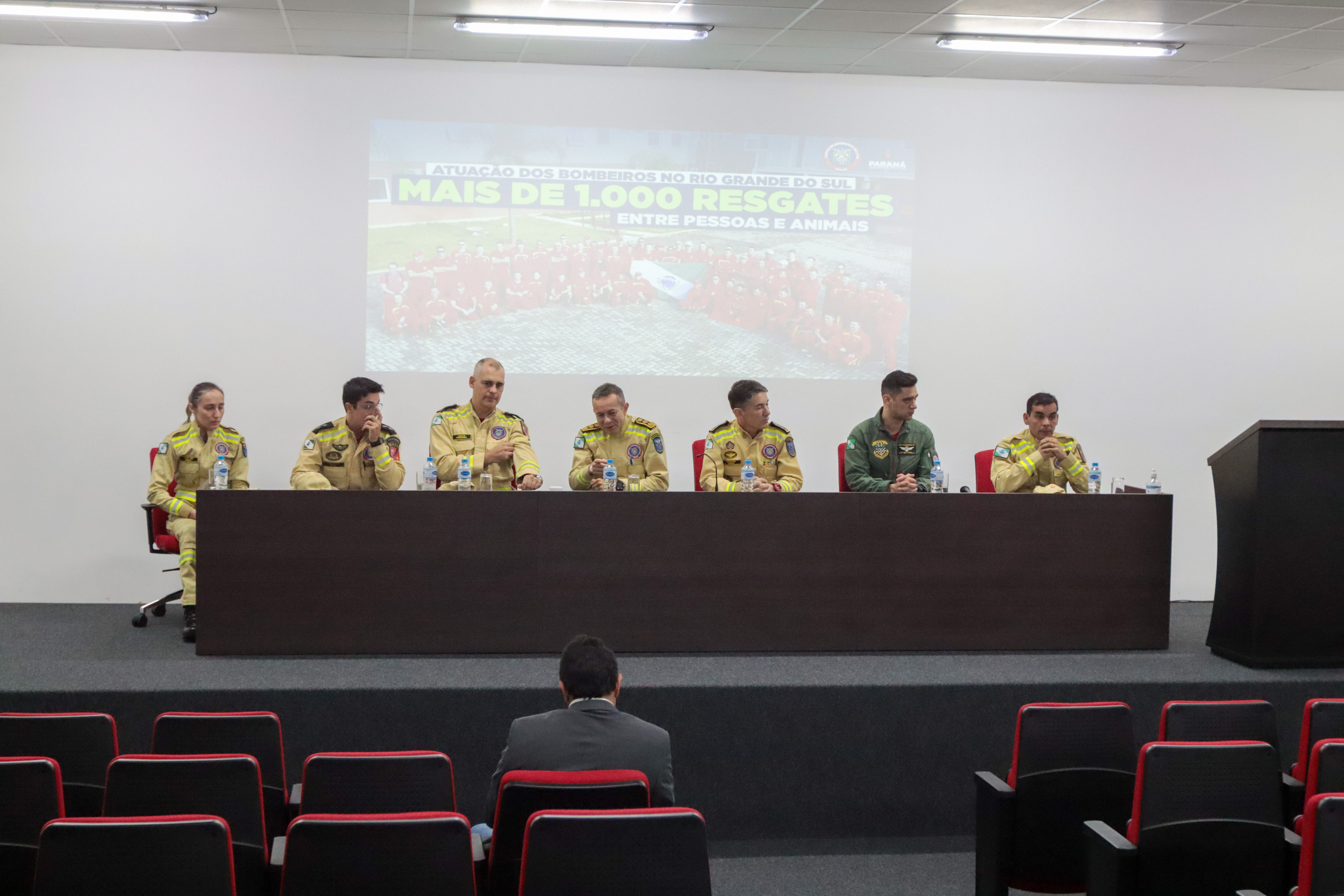 Com a presença do comandante-geral do CBMPR, coronel Manoel Vasco de Figueiredo Junior, e do subcomandante-geral do CBMPR, Antonio Geraldo Hiller Lino, alguns dos bombeiros que retornaram do território gaúcho concederam entrevista coletiva no quartel do Comando-Geral, em Curitiba, em que definiram o que encontraram na missão como um "cenário de guerra". A primeira equipe fez mais de mil resgates entre os dias 2 e 8 de maio, entre pessoas e animais, além de realizar a entrega de materiais de higiene e limpeza, medicamentos e alimentos. Também apoiou outras forças de segurança com transporte médico e de militares.