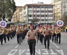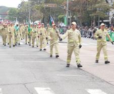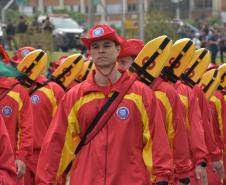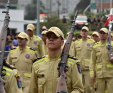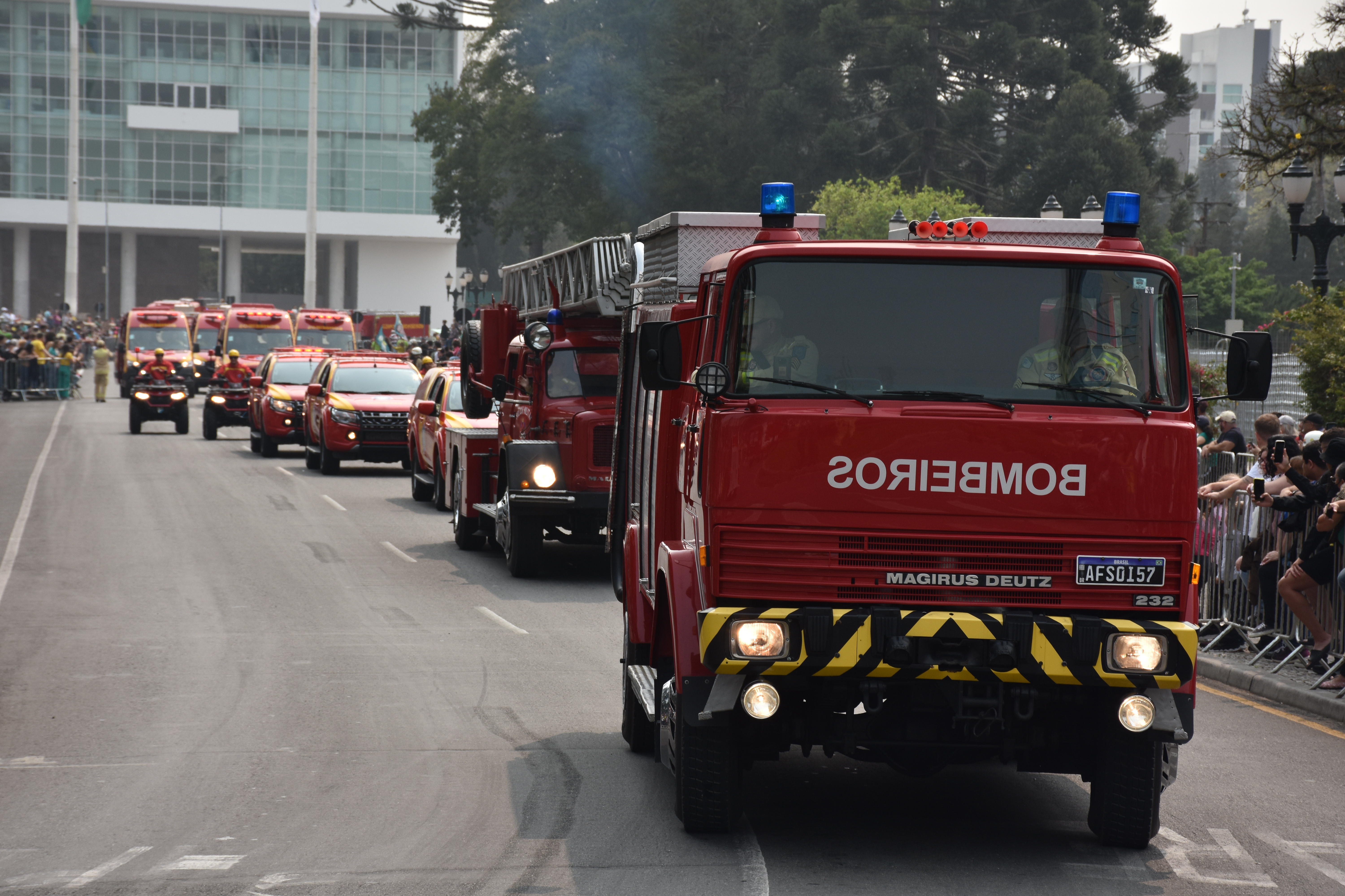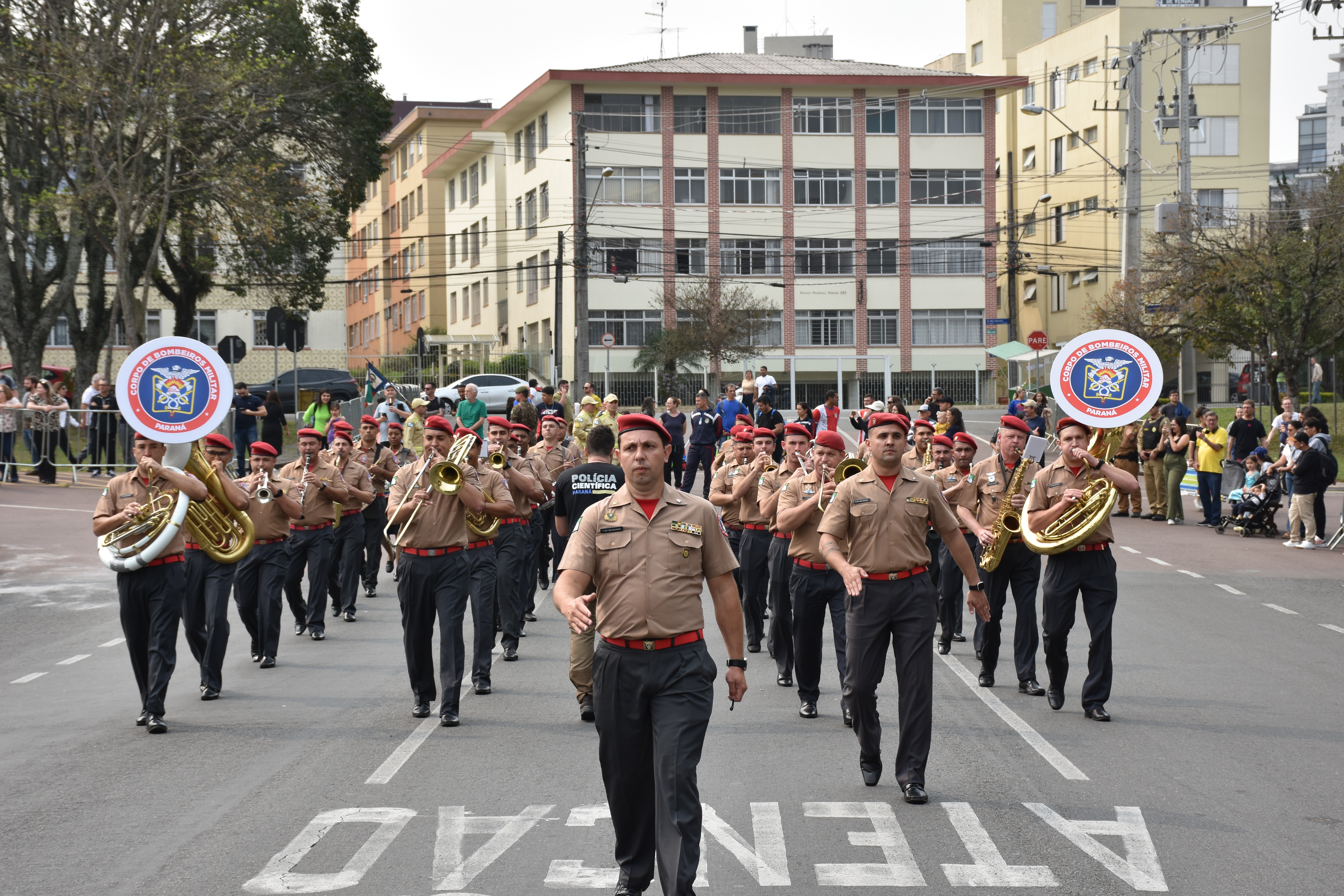 O Desfile da Independência, realizado no Centro Cívico, em Curitiba, neste sábado, dia 7 de setembro, contou com a participação de 247 homens e mulheres do efetivo do Corpo de Bombeiros Militar do Paraná (CBMPR) e 37 viaturas. A passagem da tropa na Avenida Cândido de Abreu foi realizada sob o embalo musical da recém-criada banda da Instituição.
