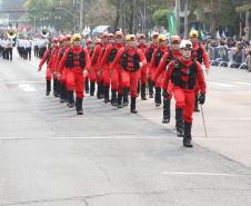 A responsabilidade pelo fechamento do desfile do Corpo de Bombeiros Militar do Paraná foi do Grupo de Operações de Socorro Tático (GOST), que atua prioritariamente em atendimentos de buscas e resgates. Sob a liderança do 1º tenente Daniel Kaneko Leal, eles desfilaram com o tradicional uniforme vermelho da unidade e com a presença dos cães do canil central da Corporação.