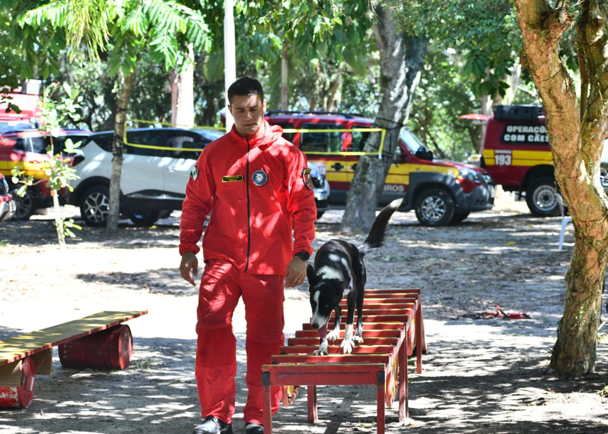 Certificação - O processo de certificação tem três etapas, que começa pela avaliação veterinária dos cães. “Depois, os testes de agressividade e habilidades fundamentais, nos quais espera-se que o cão não demonstre agressividade contra pessoas e outros cães, além de obediência e destreza em provas de obstáculos”, contou o tenente Kaneko. A última etapa é a de varredura dos cenários montados para o evento. “Por fim, os binômios são submetidos às provas de busca, que são divididas em modalidades específicas. São simulados de buscas em áreas urbanas, de estruturas colapsadas, áreas rurais ou restos mortais”, acrescentou.