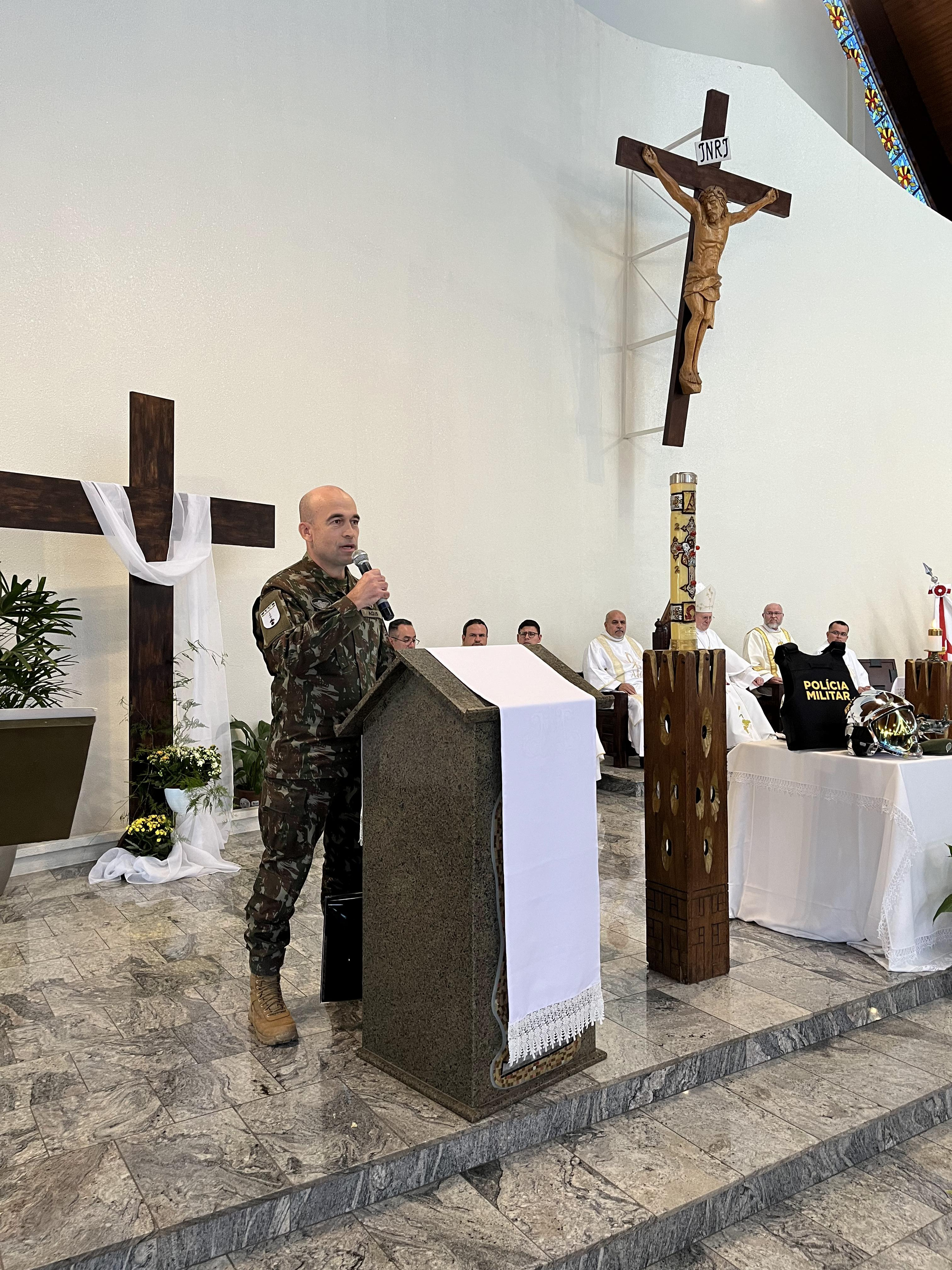 Antes do encerramento do ato pelo Arcebispo, o general-de-brigada Erlon Pacheco da Silva, comandante da artilharia divisionária da 5ª divisão do Exército, parabenizou o comando-geral do CBMPR e a arquidiocese pelo evento e destacou o que significa esse momento para os militares. “A Páscoa celebra a vitória da vida sobre a morte. Nós celebramos hoje a vida, nossa fé, o perdão de Deus e nosso compromisso de amor e dedicação à Pátria”, disse o general-de-brigada.