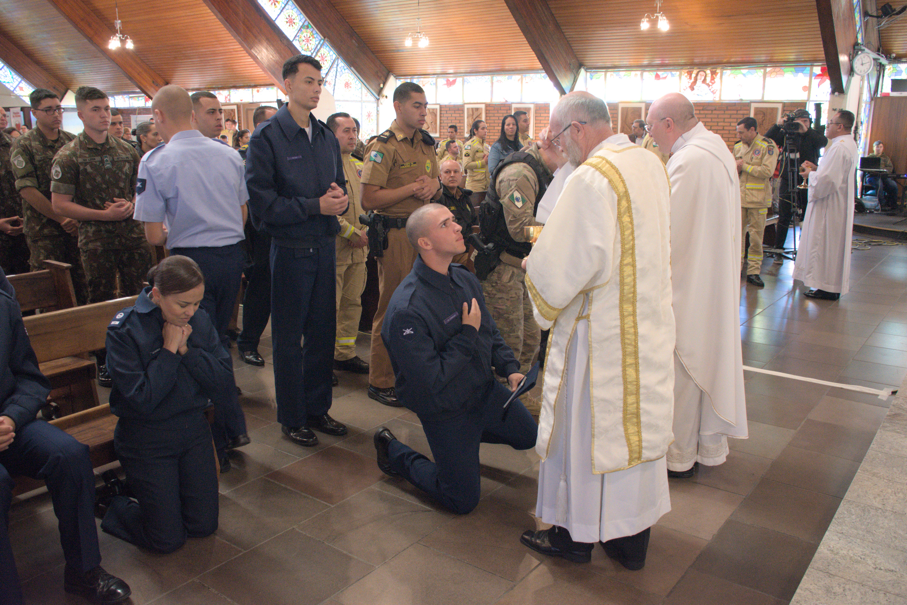 Missa - A cerimônia católica ocorreu na Paróquia Imaculada Conceição, no Guabirotuba, celebrada pelo Arcebispo Metropolitano de Curitiba Dom José Antônio Peruzzo. Ele abriu o encontro falando dos pracinhas brasileiros, lembrando a origem da Páscoa dos Militares, e sua importância. “Por trás dos representantes dessas forças de segurança há afeto, sonhos, esperanças e, às vezes, dores, espinhos. E derramam lágrimas. Nada mais humano. Por isso, aqui estamos para conferir um sentido eucarístico para tantas experiências vividas em intensidade”, declarou Dom José.
