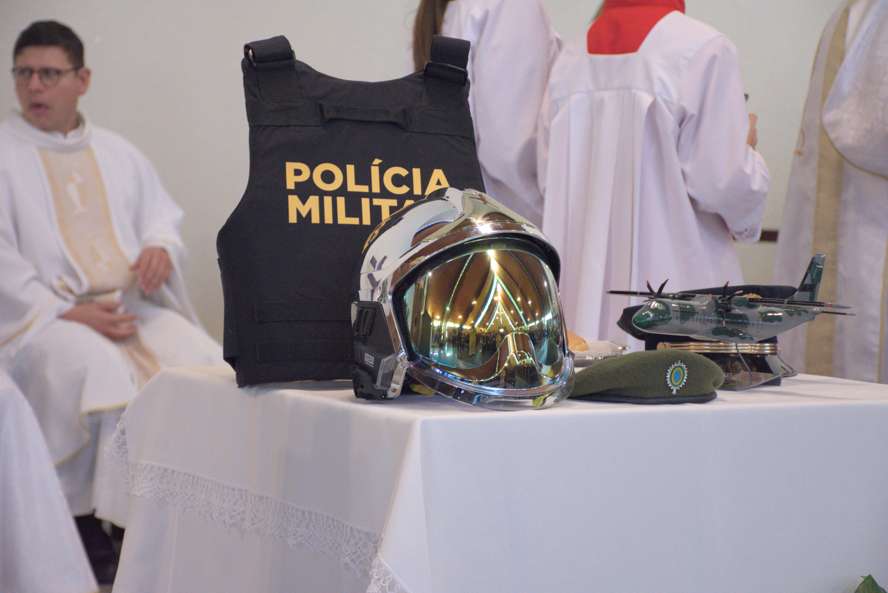 Após cantos de louvor e da liturgia, que teve a participação especial de integrantes das diversas forças de segurança, pouco antes do rito de Consagração, itens simbolizando as forças de segurança presentes foram posicionados ao lado do altar para a bênção. Eram eles um capacete do Corpo de Bombeiros; uma boina do Exército; uma réplica de avião, lembrando a Aeronáutica; um quepe da Guarda Municipal; e um colete balístico da Polícia Militar.