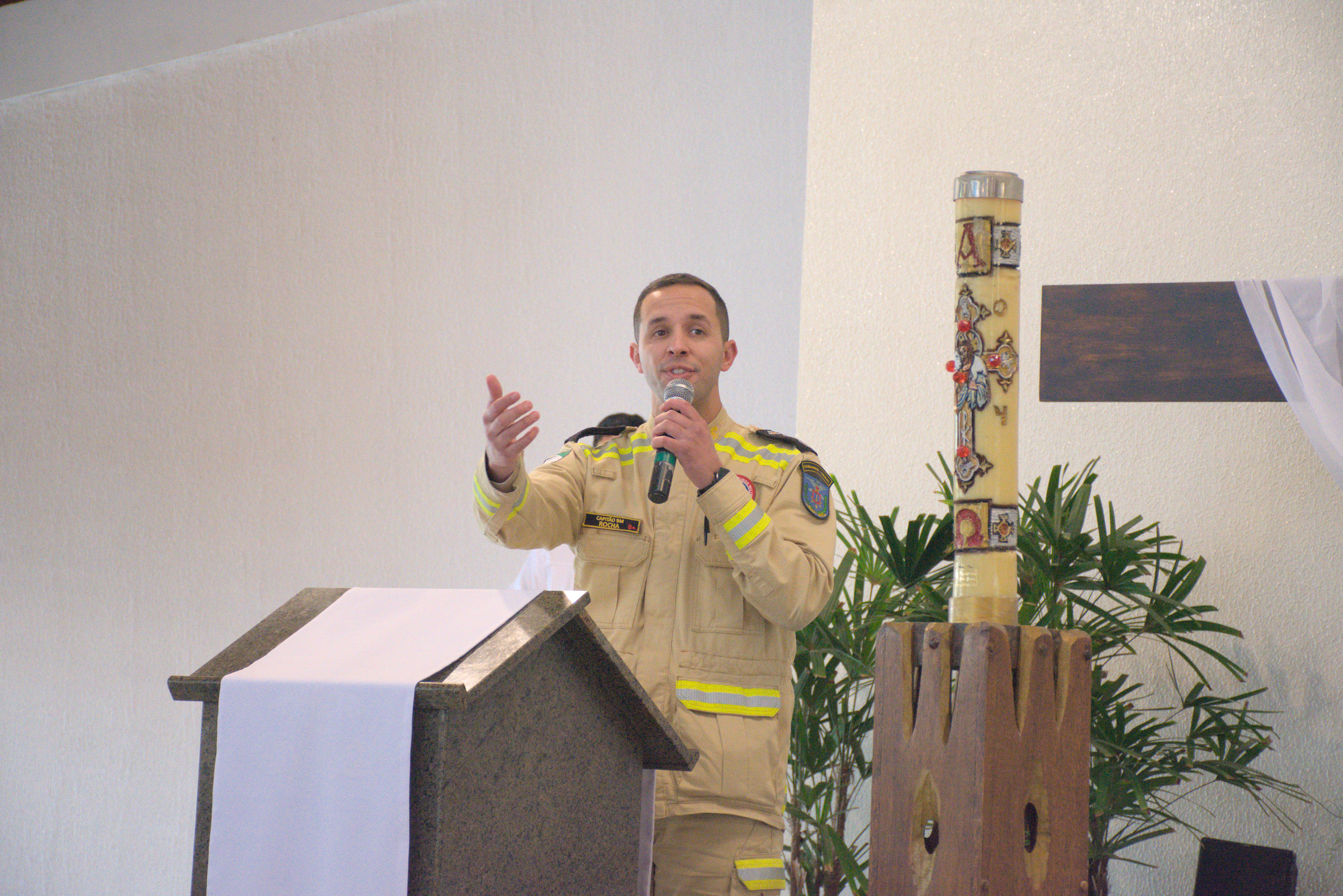“Foi uma grata satisfação para o Corpo de Bombeiros ter sido convidado para ser o responsável pela Páscoa dos Militares, uma celebração muito importante para todos nós”, comentou o coronel Manoel Vasco de Figueiredo Junior, comandante-geral do CBMPR. “Tivemos um evento católico e um evento evangélico, com o objetivo único de agradecer a Deus por tudo aquilo que tem feito pelas nossas corporações”, complementou ele, que foi à missa acompanhado da esposa Merula de Figueiredo. Lá, em sua fala diante dos presentes ao Santuário, destacou ainda a chance de reflexão e a reafirmação dos valores que guiam os militares, como amor ao próximo e altruísmo, que a Páscoa proporciona.