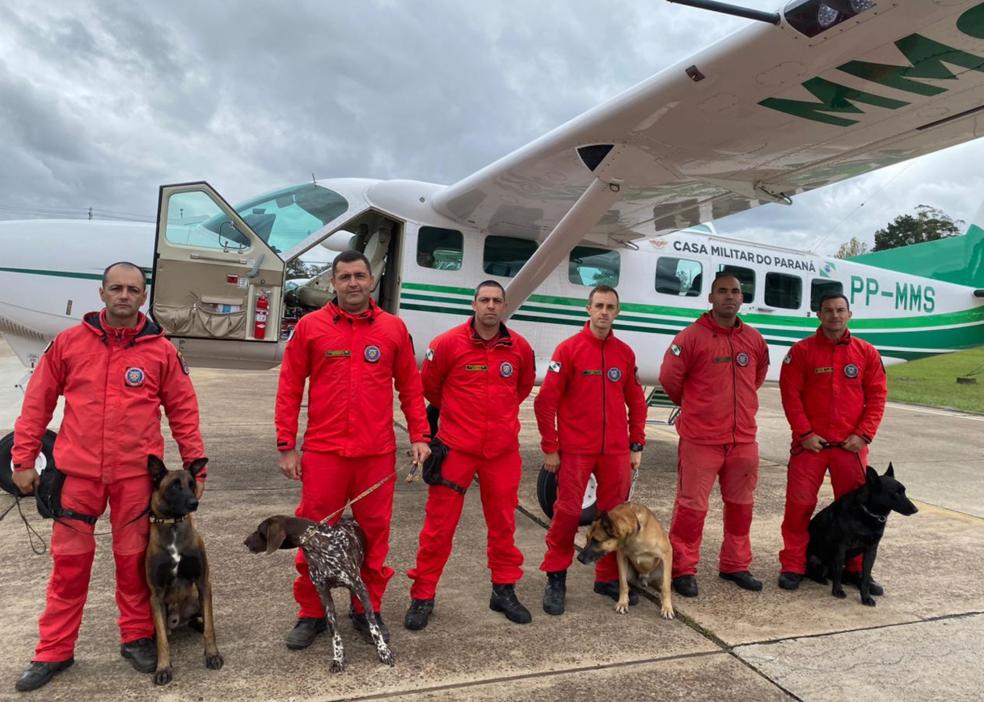 A fase de buscas por desaparecidos começou na semana anterior, quando foram enviados para o território gaúcho os dois primeiros binômios do CBMPR. Os binômios são as duplas formadas pelo bombeiro militar e o cão - no caso da primeira equipe, o sargento Lucas Zemuner Berzotti, com Eva; e o cabo Rodrigo de Oliveira Santos, com Skull. Eles atuaram em Bento Gonçalves e Veranópolis, enquanto a maior parte da equipe se concentrava em Pelotas realizando principalmente trabalho de orientação, ajuda humanitária e transporte de materiais diversos. Os novos binômios em ação são o soldado Fabiano Krul, com Hórus; e cabo João Carlos Alves Júnior, com Acauã.