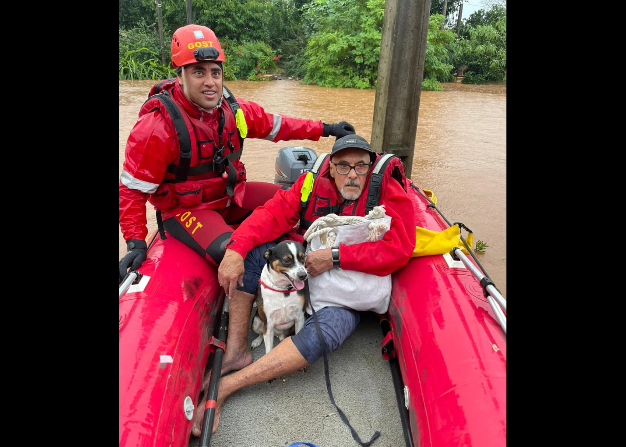 “Chegamos nesta quinta-feira pela manhã na cidade de São Sebastião do Caí e imediatamente iniciamos as operações de resgate. Até então os rios ainda estavam subindo, tinha muita gente em cima das casas. Resgatamos 129 pessoas - incluindo idosos, crianças, pessoas com comorbidades - e muitos animais”, explicou o comandante do Grupo de Operações de Socorro Tático (GOST), major Ícaro Gabriel Greinert, que está à frente da força-tarefa paranaense no território vizinho.