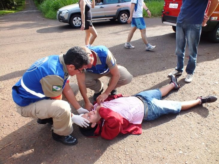 Em caso de acidente com vítima, disque 193. Você será atendido por uma equipe especializada, que está à sua disposição 24 horas por dia, no Corpo de Bombeiros. Ao ser atendido, você será solicitado a prestar várias informações. Tenha calma e responda a todas as perguntas com clareza, pois a equipe de socorro já estará se deslocando e suas informações são muito importantes para que o médico tome a decisão adequada.